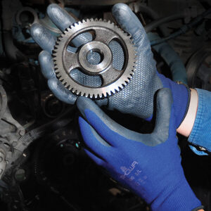 SHOWA 380 nitriilpunktidega kindad on kerged, elastsed ja mugavad. Nitriiliga kaetud nailonsõrmikutel on kõrge vastupidavus deformatsioonile ning hoiavad oma kuju kauem. Kinnastel on väga hea haarduvus, isegi õlisel ja märjal pinnal. Mustriga mikropoorne nitriilvahust kate peopesas on väga vastupidav hõõrdumisele. Hingav käeselg vähendab higistamist. Õmblusteta ergonoomiline disain tagab maksimaalse mugavuse.Kasutusvaldkond: sobivad õliste ja libedate esemete käsitlemiseks, mehhaanikutele, ehitusele, tootmisesse jm.